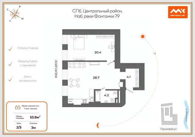 Купить квартиру с евроремонтом на набережной Реки Фонтанки в Санкт-Петербурге (от 11,1 млн руб.)