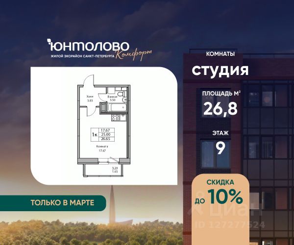 Продаeтся 3-к квартира 80.6 кв.м. экорайона "Юнтолово" (Приморский р-н) напрямую от застройщика "Главстрой Санкт-Петербург". Доступны льготная ипотека, рассрочка, трейд-ин и спецпредложения. Стоимость квартиры в объявлении указана со скидкой 10%. Cкидка прeдоcтавляется пpи 100% oплaтe или ипотeкe. Подробности уточняйте в отделе продаж. О проекте Жилой экорайон "Юнтолово" расположен в престижном Приморском районе, в живописной зелёной зоне недалеко от Юнтоловского заказника. На участке площадью 437 га планируется около 2,2 млн кв. м жилья с образовательной, медицинской, торговой, деловой инфраструктурой и общественными пространствами. Настоящее сердце "Юнтолово" — Центральный парк площадью 20 гектаров. Главная идея экорайона — близость к настоящей природе в черте города. Расположение и транспортная доступность Тишина и зелёное окружение района сочетаются с городской инфраструктурой и удобной логистикой. Остановки общественного транспорта до метро "Беговая", "Старая Деревня", "Комендантский проспект" и "Чёрная речка" в шаговой доступности. Близость КАД, ЗСД и Приморского шоссе обеспечивает быстрый выезд в центр, Курортный район и другие части города. Инфраструктура В парк-квартале "Юнтолово" создана вся необходимая социальная и коммерческая инфраструктура. Для детей открыты 4 современных детских сада и 2 школы. На первых этажах работают кафе и пекарни, магазины, аптеки, салоны красоты, МФЦ, почта России, развивающие центры для детей и другие сервисы. Для отдыха и спорта Особое внимание уделено качеству общественных пространств, формирующих среду для отдыха, общения и активного образа жизни. Для маленьких жителей организованы детские площадки с игровыми комплексами для всех возрастных групп. Для активного отдыха — уличные тренажёры, футбольные, волейбольные и баскетбольные поля, йога-зона, велодорожки, беговые маршруты и скейт-парк. На берегу реки Юнтоловки открыт гребной клуб "ПричалЮ" для любителей сапсёрфинга и гребли. Планировочные решения В "Юнтолово" предусмотрена широкая линейка планировок — от компактных студий 23 м² до семейных четырёхкомнатных квартир до 111 м² с мастер-спальнями, гостевым санузлом и системами хранения. Квартиры сдаются с чистовой отделкой "Комфорт" в светлом и темном решении. Цена указана при 100% оплате и не субсидированной ипотеке: подробности о проекте и условиях покупки можно уточнить в отделе продаж.