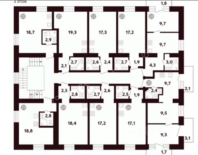 Квартира 29.7 квадратных метров 26.7 метров квартира +3 лоджия.