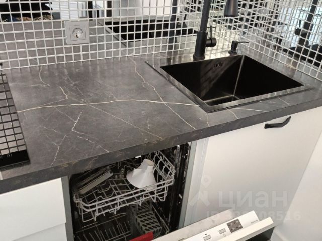 - Кухня расположена удобно, за углом от входной двери в комнату. В ней есть: раковина из нержавеющей стали, система обратного осмоса для очистки воды с накопительным бачком (Гейзер Престиж Смарт), хорошая электрическая четырёхконфорочная плита с вместительной духовкой, вытяжка с режимом рециркуляции, разделочный стол, навесные и напольные шкафы, микроволновая печь. Сбоку от кухни до входной двери вместительный глубокий пенал.