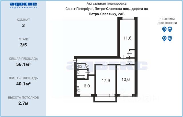 10 минут пешком до ж/д Колпино, спокойным шагом, 12 минут до метро Обухово, 23 минуты на электричке на ласточке или 35 минут на обычной электричке от ж/д Колпино до Московского вокзала, метро Восстания.