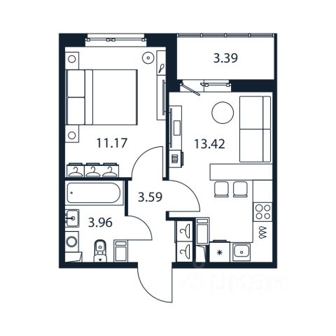 Квартира уже сдана - ключи на руках! Общая площадь - 37,4 м, и она грамотно распределена: