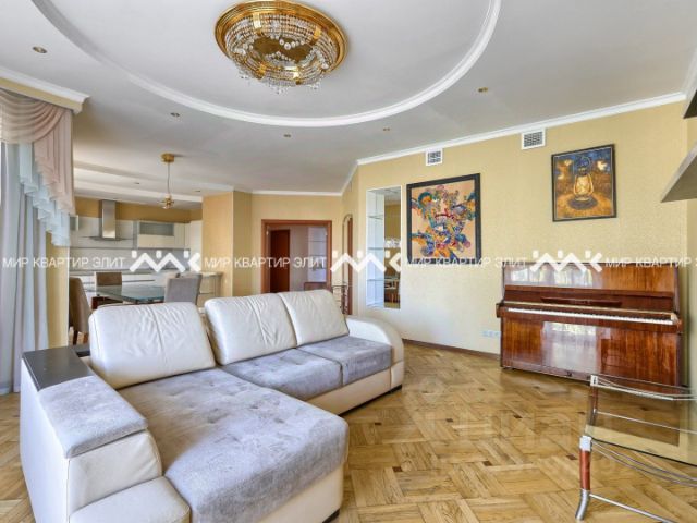 Площадь — 113.9 м². Большая кухня гостинная почти 50 м² с уютным просторным балконом, который смотрит на большой зеленый двор.