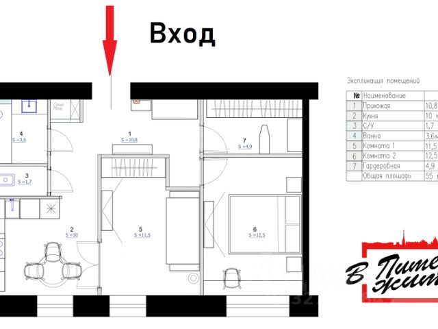 Пространство обставлено мебелью и техникой (стиральная и посудомоечная машина, холодильник, СВЧ, в мойке на кухне установлен измельчитель пищевых отходов), что позволяет сразу заехать и жить без дополнительных вложений. Планировка продумана до мелочей: есть отдельный санузел, который обеспечит удобство для всей семьи, много мест хранения: кладовка для размещения необходимого инвентаря, гардеробная, встроенные шкафы, изготовленные под заказ, и антресоли в которых можно хранить от чемоданов до лыжного инвентаря!