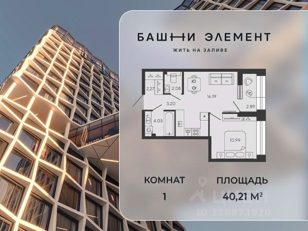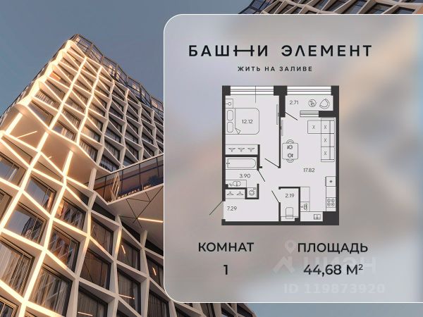 Квартира 327 в корпусе Купрум проекта бизнес-класса "Башни Элемент". "Башни Элемент" новый жилой проект бизнес-класса на Васильевском острове от девелоперской компании "ELEMENТ". В его составе 5 башен, две из которых соединены первым в Санкт-Петербурге "небесным мостом" с клубной инфраструктурой. " Первая линия Финского залива (южная часть намыва Васильевского острова), 80% квартир с видом на воду Футуристичная архитектура от "А.Лен" 5 разновысотных башен: КАРБОН, КУПРУМ, ТИТАН, ПЛАТИНА и ВОЛЬФРАМ (от 18 до 22 этажей) 1026 квартир от студий до 6-комнатных планировок формата "евро", в башнях ТИТАН и ПЛАТИНА 12 видовых пентхаусов Многофункциональный зал для событий, гостиная с кухонной зоной и террасой, коворкинг с "тихими" кабинетами, залы для йоги и персональных тренировок, комната для медитаций, кинозал, библиотека с гостиной и появятся в клубном пространстве "небесного моста" на площади 1000 м2 В стилобатной части проекта "ELEMENT" создаст инфраструктуру, ориентированную в том числе на поколение "альфа" IT-школу с мультимодальным обучением, образовательно-развлекательный кластер, творческие мастерские, а также семейный центр с рестораном и фитнес-клуб с 25-метровым бассейном, тренажерным залом и фитнес-зоной Ландшафтный парк со спортивными зонами, детскими площадками и местами для отдыха площадью 2600 м2 Подземный паркинг с двухуровневым хранением на 552 авто, еще 88 мест на открытой автостоянке ELEMENT создаёт инновационные жилые и коммерческие объекты в Санкт-Петербурге и Москве, которые устанавливают новые стандарты эффективной жизни в мегаполисах.