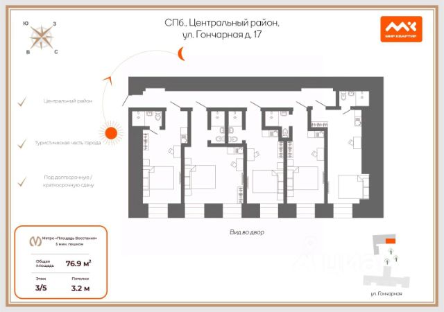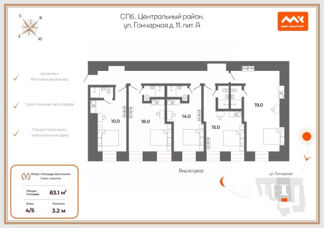 Продается просторная двухкомнатная квартира в историческом центре Санкт-Петербурга. Общая площадь составляет 81,7 кв. м, потолки высотой 3,51 метра. Квартира расположена на первом этаже четырехэтажного кирпичного дома 1870 года постройки. Окна выходят во двор, что обеспечивает тишину и уединение. До станции метро "Площадь Восстания" всего 7 минут пешком. В 2 минутах Ж/д вокзал. Квартира без ремонта, что предоставляет отличную возможность создать интерьер по вашему вкусу. Площадь кухни — 9,5 кв. м, что позволяет организовать как уютную зону для готовки, так и место для семейных обедов. Просторные комнаты и высокие потолки дают простор для дизайнерских решений. В квартире есть один отдельный санузел. Дом находится в хорошем состоянии, несмотря на свой возраст. Кирпичные стены обеспечивают надежную теплоизоляцию и звукоизоляцию. Историческое здание придает особый шарм и уникальность жилью. Инфраструктура района развита: рядом есть школы, детские сады, клиники и магазины. Все необходимое для комфортной жизни находится в шаговой доступности. шаговая доступность — до центра города можно добраться быстро и удобно. Квартира продается без обременений. Сделка оформляется по договору купли-продажи. Возможна ипотека. Все документы готовы к сделке, юридическая чистота объекта гарантирована. Приглашаем вас на просмотр этой уникальной квартиры. Запишитесь на удобное время, чтобы лично оценить все ее преимущества.