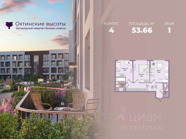Загородный квартал бизнес-класса "Охтинские высоты" - это ваш новый образ жизни, в котором сбалансированы преимущества проживания на природе в сочетании с городскими сервисами. Квартал расположен рядом со всесезонным курортом Охта Парк, всего в 10 минутах от КАДа. В окружении расположены премиальные конные клубы, теннисные корты, банное пространство "Камыши". Также к услугам жителей легендарный лесной каток, теплый бассейн на открытом воздухе, SPA, рестораны и энотека Охта Парка, куда от квартала будет запущен шаттл только для жителей "Охтинских высот". Вокруг квартал рекреационная лесная зона невероятной красоты, буквально кислородная фабрика 24/7. Ко въезду ведет новая автомобильная дорога, специально построенная для комфорта будущих жителей "Охтинских высот". В первой очереди квартала уже реализуется детский сад на 120 мест. Запроектированы коммерческие помещения под аптеку, супермаркет, пункты выдачи заказов, кофейни и велнесс. Территория квартала безбарьерная. В каждом дворе будет выполнено уникальное благоустройство по авторскому проекту с детскими и спортивными площадками, местами для отдыха и активностей. Концепция озеленения выстроена по принципу "живописный двор круглый год". Любителям активного образа жизни особенно понравятся эксплуатируемые кровли с зонами для йоги и солярия, откуда открывается невероятный вид на зеленый лес, раскинувшийся вокруг квартала. Дворы закрытые, без машин. Безопасность жителей обеспечивает система круглосуточного наблюдения и охрана. Входные группы светопрозрачные, с увеличенными окнами "от колена". Вход с уровня земли. Жители всегда видят, что происходит во дворе и в парадной. МОПы отделами качественными материалами с фактурой дерева и камня. В каждой парадной современные грузопассажирские лифты, отдельно выделены колясочные и велосипедные. Квартал малоэтажный, всего 4 этажа. Высота потолков при этом от 3 м и выше. Квартиры спроектированы таким образом, чтобы закрыть потребности в ежедневном комфортном проживании для семей любого состава. В квартирах: • Живописные патио на первых этажах • Зоны для организации хранения • Мастер-спальни • Комнаты правильной формы • Просторные кухни-гостиные с комфортным зонированием • Гардеробные • Дополнительные санузлы • Увеличенные окна 2х2 м • Система управления комфортом в каждой квартире ("Умный дом") • Подготовка под установку кондиционера • Балконы и лоджии Все квартиры сдаются с отделкой white-box и Системой управления комфортом (умный дом). На выбор можно заказать чистовую отделку, которая представлена в двух вариантах.