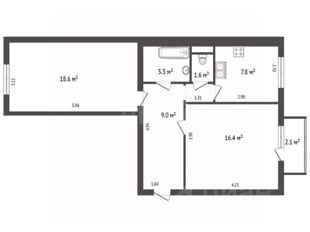 Продается 2-х комнатная квартира общей площадью 53,1 кв. м. на 6 этаже 7-ми этажного