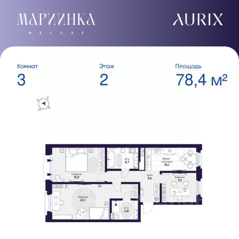 Продается 3-к квартира без отделки в ЖК "Mariinka Deluxe". Общая площадь квартиры — 78.4 кв. м, этаж 2 из 9. Тип дома — монолитный. Цена указана при 100% оплате.