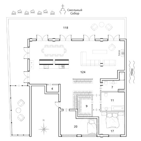 Купить квартиру с высокими потолками на набережной Реки Малой Невки в Санкт-Петербурге