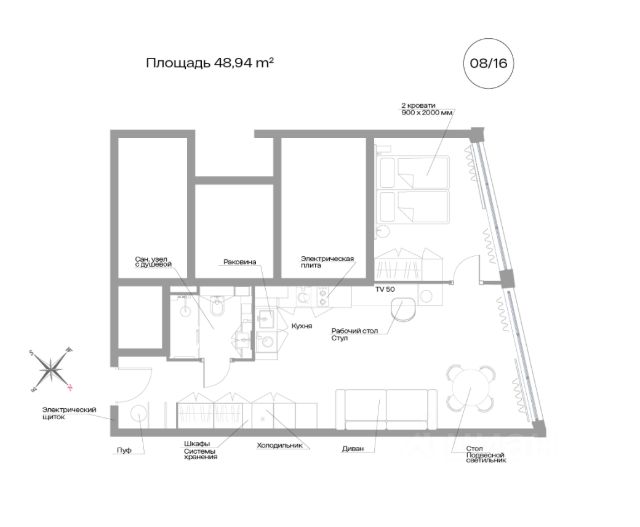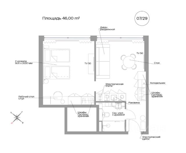 Квартира обладает грамотными и современными планировочными решениями, большое количество встроенной мебели позволит разместить весь гардероб будущих обитателей.