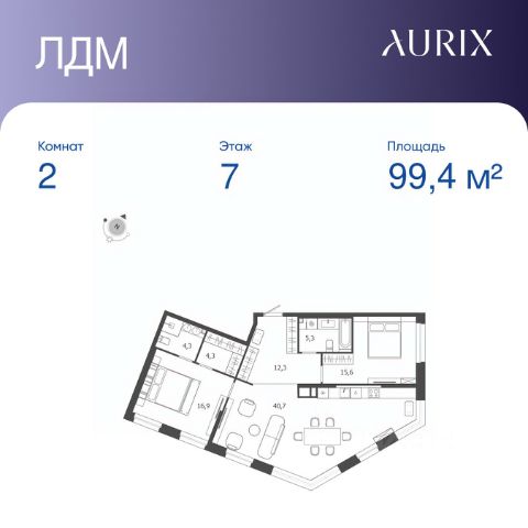 Продается 2-к квартира без отделки в ЖК "ЛДМ". Общая площадь квартиры — 99.4 кв. м, этаж 7 из 9. Тип дома — монолитный. Цена указана при 100% оплате. Описание из материнского фида
