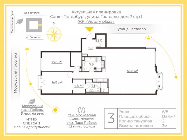 Арт. 120837257 Клубный дом Victory Plaza объявлен лучшим жилым комплексом в Северной столице по итогам престижного всероссийского конкурса, а также победитель премии Urban Awards. Французская архитектура комплекса находит продолжение в интерьере квартиры, где каждая деталь выверена. Изысканная работа с текстурами, естественные цвета и функциональное освещение найдут отклик у настоящих эстетов. Преимуществами квартиры являются: -Редкое планировочное решение для этого дома сочетает в себе панорамное остекление и французские балконы, которые обеспечивают превосходную вентиляцию и инсоляцию открывая вид на Чесменский дворец - живой пейзаж Петербурга. -Выполнен индивидуальный дизайн-проект с использованием премиальных высококачественных материалов; -Установлена приточно-вытяжная вентиляция с очисткой воздуха "Mitsubishi"; -Станция очистки воды до питьевого состояния; -Шумоизоляция; -В квартире установлены оконные алюминиевые системы "Reynaers" с двухкамерными стеклопакетами и накладками из натурального массива дерева. -Паркет из ценных пород дерева; -Техника, сантехника и мебель премиальных мировых брендов: Villeroy & Boch, Jacob Delafon, KPPERSBUSCH, Hansgrohe, GRETHER&WELLS, Dyson и др. -в квартире установлена система теплого пола. В доме имеется круглосуточный консьерж-сервис, в том числе управляемый со встроенного смартфона квартиры. Система круглосуточного видеонаблюдения, контроль доступа и охрана на всех уровнях обеспечивают высокий уровень безопасности для автомобилей и личного имущества. Уборка дома проводится максимально деликатно и в удобное для жителей время. Предусмотрены отдельные входы для персонала. Подогрев пола во дворе. Подземный двухуровневый паркинг для 155 автомобилей. Камера хранения для спортивного инвентаря, колясок и т.п. Современные лифты от топ мировых производителей "ThyssenKpupp" Безупречная транспортная доступность: •до метро 5 минут; •до зсд 5 минут; •до исторического центра 20 минут; •до Финского залива 25 минут. •до ExpoForum 20 мин. Три парка, рестораны, кофейни, салоны красоты в пешей доступности.