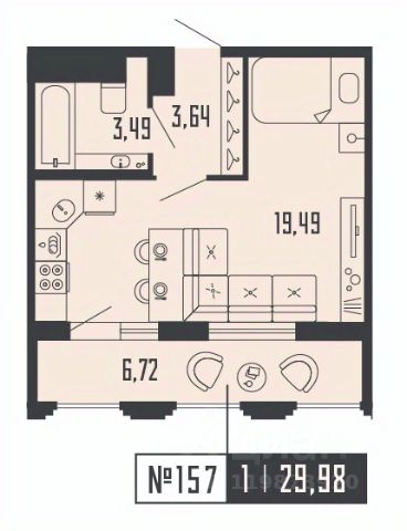 Функциональная однокомнатная квартира - Формат Light, которая подойдет для комфортного проживания небольшой семьи.