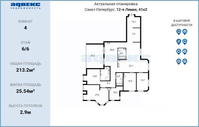 Про инфраструктуру говорить излишне, в пешей доступности набережная, большинство исторических достопримечательностей Санкт-Петербурга и модные пространства Севкабель порт и Брусницын, театры, лучшие школы города, детские сады, университеты, спортивные комплексы, а также различные сетевые магазины, пекарни, кафе, фермерские магазинчики, аптеки, поликлиника и т.д.. До станции метро Горный институт - 5 минут пешком, до Василеостровской можно дойти за 24 минуты, очень много наземного транспорта.