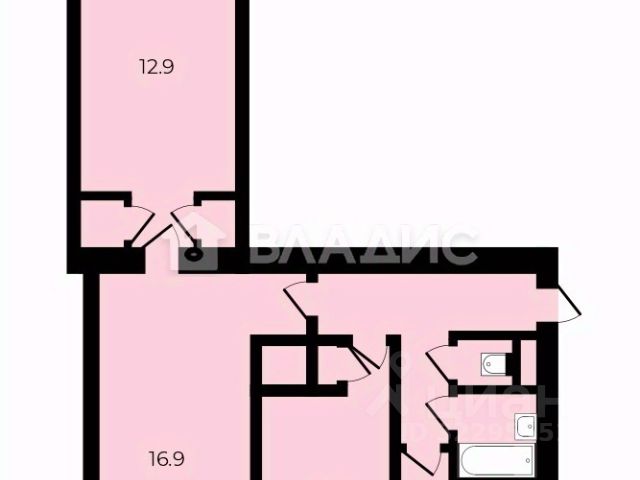 Комната 10 м2+комната 7 м2+кухня 10,7+санузел 3 м2. Балкон 2,5 м2.