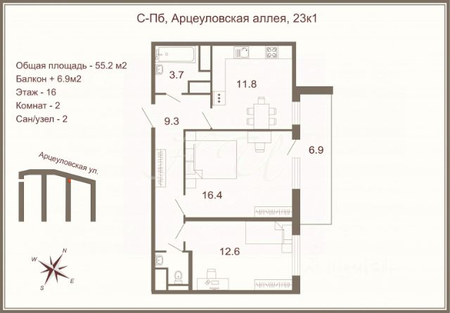 Арт. 91576875. Предлагаем вашему вниманию уютную однокомнатную квартиру, расположенную по адресу: Санкт-Петербург, Арцеуловская аллея, 23к1с1. Это отличный выбор для тех, кто ищет комфортное жилье в современном городе. ПРОДАЖА БЕЗ КОМИССИИ ОДОБРЕНИЕ ИПОТЕКИ В ПОДАРОК Kвартирa расположена нa 8 этaжe 22-этажнoго мoнолитногo домa. Квартира с изолированной планировкой общей площадью 44,9 кв.м. без учета балкона, идеально подходит для молодой семьи, как для одного человека. Просторная кухня площадью 13,3 кв. м. станет отличным местом для создания кулинарных шедевров, а светлая комната с площадью 19,6 кв.м. создаст атмосферу уюта и спокойствия. Из комнаты выход на просторный бaлкoн, который можно использовать как дополнительную зону отдыха, либо рабочее место. Раздельный санузел и отдельная ванна. В доме установлены современные лифты. Так же грамотно расположены места общего пользования, места хранения. Во дворе дома оборудована детская площадка и зона отдыха. Рядом с домом расположены школы, детские садики, магазины, пекарни, кафе, аптеки, поликлиника в пешей доступности. Транспортная доступность комплекса позволит с комфортом добираться до любой точки города как автолюбителям, поскольку поблизости расположены удобные съезды на КАД и ЗСД, так и тем, кто предпочитает перемещаться на общественном транспорте на автобусах и маршрутных такси за 15 мин. можно добраться до метро "Комендантский проспект". Планируется открытие (идет активное строительство) станции метро Шуваловский проспект (фиолетовая). Не упустите возможность стать владельцем этой прекрасной квартиры в Приморском районе! Звоните, чтобы узнать подробности и записаться на просмотр.
