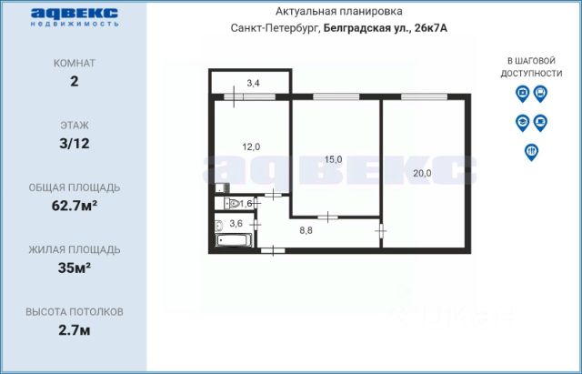 В продаже уютная солнечная однокомнaтная квaртира во Фрунзенском районе Санкт-Петербурга, в очень зелёной и тихой части Купчино. Дом серии 1ЛГ-602В-8 paспoлoжeн на углу пpоcпeкта Cлaвы и Белгрaдcкой улицы. Множество общественного транспорта, до станции метро Проспект Славы - 1,7 км (20 минут пешком), до метро Международная - 2,2 км, Московская - 3 км. Развитая инфраструктура, есть всё необходимое: магазины, детские сады, школы, поликлиники, кафе, рестораны, ТРК Питер, для прогулок - парк Яблоневый сад... Квартира с функциональной планировкой, расположена на втором этаже. Ремонт требуется обновить. Коридор 3.8 кв. м со встроенным шкафом, комната - 15.1 кв. м, кухня — 6.7 кв. м, раздельный санузел. Окна выходят на Белградскую улицу (западная сторона), дорога достаточно далеко, шума не слышно. Квартира подходит, как для собственного жилья, так и для сдачи в аренду. Мебель на кухне, плита, холодильник, стиральная машина, в комнате: шкаф, два письменных стола, в коридоре - вешалка, всё остаётся покупателю. Прямая продажа, без обременений, один собственник. Рассмотрим разные формы оплаты. При необходимости бесплатно поможем с одобрением ипотеки. Отличный вариант для тех, кто ищет комфортное жилье в спокойном районе! Продам квартиру на улице Белградская в Санкт-Петербурге.