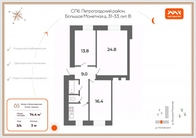 • ✓ В базе объявлений Циан 14 квартир на улице Большая Монетная в Санкт-Петербурге.