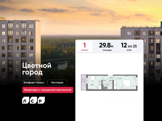 Продается 2-комнатная квартира в ЖК "Цветной город" на 2 этаже. Общая площадь составляет 46.90 кв. м. Квартира с чистовой отделкой Срок сдачи дома: 3 квартал 2026. Жилой комплекс "Цветной город" располагается по адресу Санкт-Петербург, Красногвардейский. "Цветной город" - современный масштабный эко-проект: жилые кварталы со своей сетью улиц, пешеходными бульварами и велодорожками, площадками для спорта и отдыха. Кварталы располагаются вдоль береговой линии реки Охты. "Цветной город" - это жизнь вблизи природы, но с городской пропиской. К 2026 году на берегах реки Охты будет создан Пейзажный парк с летними экотропами и зимними горками для тюбингов, скейт-парком и летним кинотеатром. В ЖК "Цветной город" запланировано и уже частично реализовано строительство 10 школ, 16 детских садов, 4 поликлиники, больница, ТРК, спортивно-оздоровительные сервисы С центром Петербурга жителей "Цветного города" свяжет Пискарёвский проспект, удобный выезд на КАД позволяет без труда добираться до других районов. Расположение: • 10 минут на авто до КАД; • 15 минут на авто до станций "Гражданский проспект" и "Академическая"; • 20 минут до ж/д станции "Ручьи".; Квартира сдается с готовой отделкой из современных экологичных материалов: на стенах плотные белые обои под покраску, на полу износостойкий матовый ламинат, в санузлах керамическая плитка на стенах и керамогранит на полу. Трубы отопления скрыты в стяжке пола и не мешают мебели. В квартире предусмотрено большое количество двойных розеток и выключателей. В ЖК "Цветной город" предусмотрена система "Умный дом": смартфон с приложением является ключом от всех дверей в ЖК, гостевой доступ оформляется в приложении, видеозвонки от домофона поступают в приложение, показания счетчиков автоматически передаются в учетные базы ЖКХ. Преимущества: • Рядом лесопарк и река Охта • Живописные виды из окон • Безбарьерная среда • Развитая социальная инфраструктура • Система "Умный дом" Успейте приобрести квартиру на выгодных условиях! Чтобы узнать подробности, обращайтесь за консультацией по телефону.