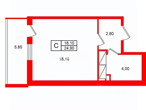 Квартира имеет квадратную форму комнаты с двумя окнами, что обеспечивает много света. Зонирована на кухонную и спальную зоны.