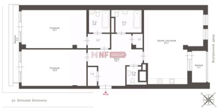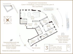 3-комнатная квартира 106 м2, в ЖК "Lumiere" с великолепной планировкой: мастер-спальня и детская комната, зона гостиной и кухни, 2 с/у, постирочная, кладовая, балкон и лоджия. Вся техника и мебель остается Покупателю.
