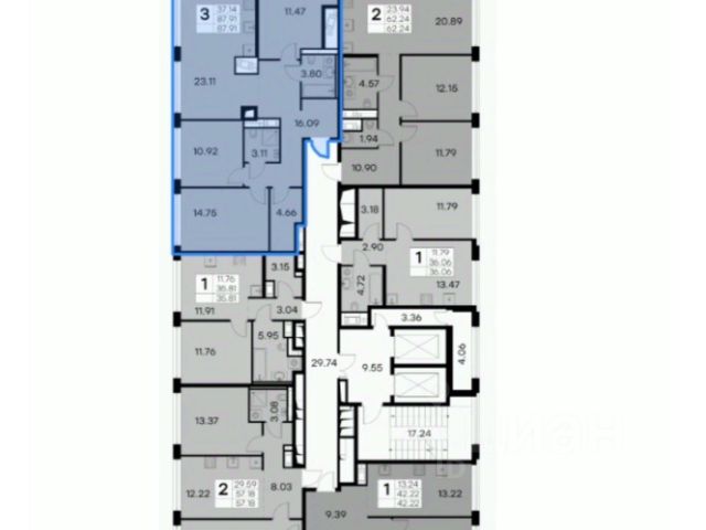 Квартира расположена на 11 этаже 21-этажного панельного дома 2015 г. постройки, всего 6 квартир на этаже.