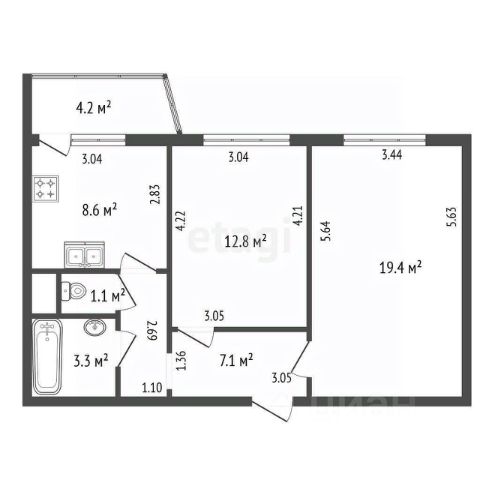 Общая площадь - 59 кв.метров плюс 3,5 кв.метра лоджия . Правильная, классическая планировка - из большого холла выходы в раздельные комнаты и на кухню. Первая продажа. Маткапитал не применялся. Жилищный кооператив.