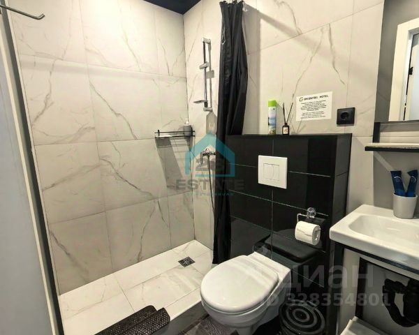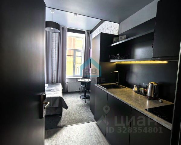 Произведён дизайнерский ремонт с заменой всех систем коммуникаций: канализации, электропроводки и сантехники. Студия укомплектована всем необходимым для жилья: кухонный гарнитур со встроенной техникой: прямая вытяжка, встроенная электрическая панель, фильтры для воды; имеется стиральная машина, микроволновая печь, кондиционер и мебель. Санузел оборудован всем необходимым. Все фотографии соответствуют.