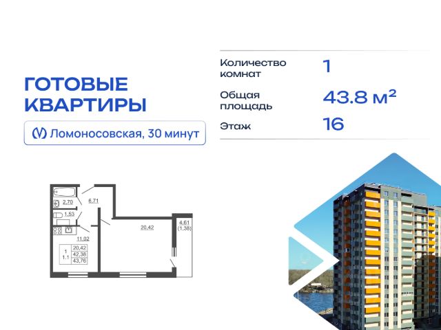 Продается студия в ЖК "Октябрьская набережная" на 15 этаже. Общая площадь составляет 25.90 кв. м. Квартира с чистовой отделкой . Жилой комплекс "Октябрьская набережная" располагается по адресу Санкт-Петербург, Невский. Октябрьская набережная - жилой комплекс на берегу Невы, который отличается живописными видами и удобным местоположением: в окрестностях ЖК есть всё необходимое для комфортной жизни. Расположение: • 2 минуты пешком до набережной Невы; • 7 минут до станции метро "Улица Дыбенко" на автомобиле; • 8 минут до Большого Обуховского моста на автомобиле; • 15 минут до ТРК "Лондон Молл" на автомобиле. Будущие жильцы могут обустроить квартиру по своему вкусу: предлагается 2 вида отделки - уютный темный "Comfort Wood" и легкий светлый "Comfort Stone". Отделка выполняется из качественных материалов: прочный ламинат с фактурой светлого дерева или белого камня, светлые обои под покраску, лаконичные межкомнатные двери. Вход в парадные расположен на уровне земли и создает доступную среду для пожилых людей, людей с ограниченными возможностями и мам с колясками. На цокольном этаже находятся кладовые, которые позволят освободить пространство квартиры от лишних вещей. Во всех парадных расположены колясочные, рядом с ними - велопарковки. На территории комплекса есть всё для любителей активного отдыха: спортивные площадки, уличные тренажеры, велодорожки, места для игры в баскетбол и волейбол. Спортсмены могут насладиться живописными видами во время пробежки вдоль набережной. В зелёных и облагороженных дворах есть всё и для семей с детьми: тематические площадки, детский сад и даже школа. Комфортная среда для питомцев - еще одно преимущество "Октябрьской набережной": рядом с домами находится площадка для выгула собак. Для удобства автомобилистов на территории комплекса устроены крытые паркинги с безопасными охраняемыми выездами и большим количеством машино-мест. В пешей доступности расположены супермаркеты, кафе, парикмахерские, отделения банков. Преимущества: • Первая береговая линия • Двор без машин • Доступная среда • Развитая инфраструктура • Школа и детский сад во дворе • Близость к метро Успейте приобрести квартиру на выгодных условиях! Чтобы узнать подробности, обращайтесь за консультацией по телефону.