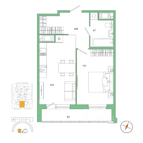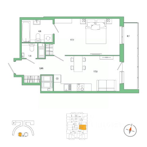 Продаётся 1 комнатная квартира 231 в ЖК ОКЛА 5.1.1