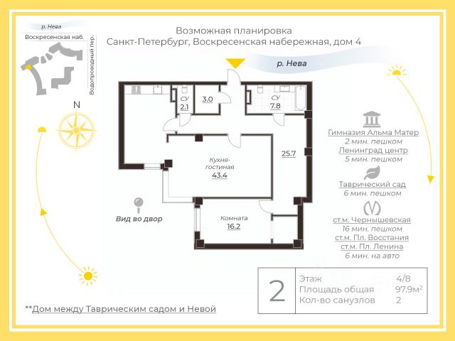 Арт. 68487913 Уникальная, видовая квартира в самом центе города для большой семьи с новым ремонтом и итальянской мебелью без амортизации! Заезжай и живи! Уважаемый покупатель! В продаже просторная 4-х комнатная квартира, в историческом центре на берегу Невы. ЖК "Робеспьера, 4" находится в Центральном районе Санкт-Петербурга, на Воскресенской набережной (до 2014 года ее называли набережной Робеспьера). ЖК "Робеспьера, 4" построили в 2006 году. Проект готовили в архитектурной мастерской В.М. Фрайфельда. Застройщик - компания "Возрождение Санкт-Петербурга". Общая площадь квартиры 170 кв.м. Из панорамных окон кухни- гостиной открывается вид на набережную Невы, Петропавловскую крепость и другие архитектурные достопримечательности . Окна двух спален и кабинета обращены в тихий закрытый двор. Одна из спален со своей ванной комнатой. Ремонт сделан по индивидуальному дизайн- проекту, с грамотным планированием пространства для комфортного проживания. Продумано все до мельчащих деталей. В отделке использованы премиальные натуральные материалы. Вся мебель и техника привезена из Европы и сделана на заказ. После ремонта, в квартире никто никогда не жил. Есть место в подземном паркинге. Лифт спускается в паркинг. Характеристики: В комплексе установили систему вентиляции, систему очистки воды. На первых этажах ЖК "Робеспьера, 4" - продуктовые магазины, кафе, фитнес-клуб с бассейном и сауной, салон красоты, химчистка. На территории комплекса выполнены ландшафтные работы, обустроена детская площадка. Безопасность жителей ЖК "Робеспьера, 4" круглосуточно обеспечивают сотрудники охраны, консьержи. Есть видеонаблюдение. Рядом Таврический сад и Смольный собор. Комплекс считается одним из лучших и престижных в Центральном районе, для людей, предъявляющих к качеству жилья повышенные требования. Прямая продажа . Больше 5 лет. Один взрослый собственник. Никто не прописан. Предоставляем полное юридическое сопровождение по сделке для покупателя, помощь в ипотеке. Приглашаем на просмотр! Предлагаем ПРЕМИАЛЬНОЕ обслуживание для требовательных клиентов. Оперативно организуем просмотр, предоставим полную информацию по объекту. 20 лет работы с требовательными клиентами подготовили нас к решению ВАШИХ сложных задач. Будем рады знакомству! Ул. Рубинштейна, д.8.