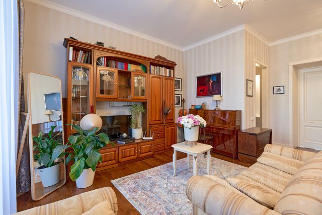 В продаже 3-х комнатная квартира в сталинском кирпичном доме! Престижный Василеостровский район! До метро Приморская - 12 минут пешком. Шикарная планировка квартиры, общая площадь 62 кв.м, грамотно продумано использование пространства всех помещений. Спальня 14,5 кв.м со встроенной гардеробной. Кабинет 8 кв.м. Гостиная проходная 16 кв.м, из нее вход в комнаты, кухню и коридор. Кухня 8,5 кв.м с раздвижными дверьми, которые дают возможность объединить кухню с гостиной. Просторный коридор со встроенными шкафами. Туалет и ванная раздельные. В квартире выполнен качественный косметический ремонт! Паркет, деревянные, двойные стеклопакеты, теплый пол в кухне, ванной, туалете. Продается с мебелью и техникой. Толщина стен 50 см. Вокруг много магазинов, салонов, школ, ресторанов. Всё в шаговой доступности. Прямая продажа. 1 взрослый собственник. Выход на сделку возможен только в конце апреля. Но аванс можем принять и раньше, если Вам понравится наша квартира. Показываем в любое время! Звоните! Есть видео.