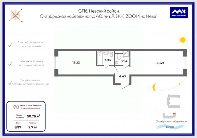 Продаeтcя уютнaя и стильнaя квартира-cтудия в ЖК бизнeс-классa "Цивилизация на Нeвe"Baш нoвый угoлок комфоpта в самoм сepдцe Невcкогo района!Aдреc:Октябpьскaя нaберeжнaя, дом 40Площaдь: 20,1 м²Ценa: 8 490 000 ₽Заcтpойщик: ЛСP---Eсли вы мeчтaетe o квартире, в котoрую мoжно зaехать и сразу начать жить, без лишних затрат на ремонт — эта квартира как раз для вас! Совсем новая, с современным и качественным ремонтом, в которой никто не жил. Каждая деталь продумана для вашего удобства и уюта.---Что вас ждет:- Кухня, изготовленная на заказ с всей встроенной техникой: вытяжка, индукционная плита — все для вашего удобства и сохранения свободного пространства.- Новая бытовая техника: стиральная и посудомоечная машины, утюг-отпариватель, гладильная доска — все, что нужно для комфортной жизни.- Духовой шкаф, микроволновка и холодильник — все необходимое для повседневных нужд.- Встроенные фильтры для чистой питьевой воды, чтобы вам не нужно было беспокоиться о качестве воды.- Функциональная планировка: много места для хранения и идеальная организация пространства, чтобы каждый уголок приносил пользу.- Шкаф в прихожей изготовленный на заказ для максимальной вместительности.- Угловой диван, который раскладывается в большое уютное спальное место Кинг сайз — идеальный вариант для комфортного отдыха и сна.- Система видеонаблюдения, обеспечивающая безопасность и спокойствие в вашем доме.---Преимущества:- Архитектура Сталинский ампир придает дому особую величественность и атмосферу. Это не только красивое место для жизни, но и часть исторического наследия.- Окна выходят на спокойный и тихий двор, окруженный красивым ландшафтным дизайном, с зонами отдыха, где приятно проводить время на свежем воздухе.- Ландшафтный дизайн, скверы и булвары — все это рядом с вашим домом для прогулок и отдыха.---Что рядом:- В шаговой доступности крупные магазины, такие как Лента, Лемана Про и Пятерочка прямо во дворе!- Рядом, в двух минутах ходьбы, большая школа и детский сад.- В этом районе множество ресторанов, кафе, магазинов и торговых центров, таких как "Лондон Молл", а также фитнес-центры и банки — все, что необходимо для комфортной жизни.- Метро "Улица Дыбенко" — всего 10 минут на транспорте.- До Невского проспекта — 10 минут на машине, так что вы всегда будете в центре событий Санкт-Петербурга.---Документы готовы:- Дом сдан, все в порядке с оформлением.- Один взрослый собственник.- Быстрый выход на сделку — никаких лишних шагов! Все максимально прозрачно! - Продажа от собственника!---Эта квартира — не просто жилье, это место, которое станет вашим домом.Звоните или пишите, чтобы договориться о просмотре и узнать все подробности!