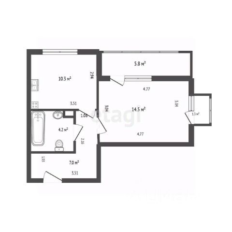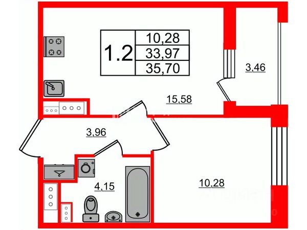 Переуступка однокомнатной квартиры, общей площадью 34,55 кв.м, получение ключей до 30 сентября 2026 года!