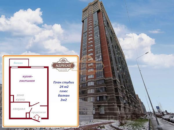 id:9797. Санкт-Петербург, Выборгский район, пос. Парголово, Толубеевский проезд, дом 26, корп.1 В продаже просторная студия в пешей доступности от метро Парнас. Один взрослый собственник, собственность более 5 лет, без обременений, прямая продажа. Работаем с ипотекой (программа на вторичное жилье), помощь в одобрении, работаем с субсидиями и сертификатами. Площадь квартиры 24м2 плюс балкон 2,0м2, кухня-гостиная с двумя окнами, площадью 16,4м2, просторный совмещенный санузел - 4,6м2, прихожая. В квартире, в 2021 году, сделан качественный ремонт - на стенах обои под покраску, на полу в комнате - ламинат, в прихожей и санузле плитка. Кухонный гарнитур с варочной поверхностью и холодильником остается новым владельцам. В прихожей остается шкаф с зеркальными створками. В квартире - домофон. На этаже всего 8 квартир, 3 лифта, один из них грузовой. Окна квартиры смотрят на Толубеевский проезд, открывается красивый вид. В парадной есть велосипедно-колясочная, видно на фото, где можно спокойно оставить свой транспорт. Вокруг дома много парковочных мест. Очень удобная инфраструктура. Рядом много самых разных магазинов, кофеен, пекарен. В пешей доступности Шуваловский парк с белочками, прудами, старинными дачами, есть где прогуляться и подышать свежим воздухом. Хорошая транспортная доступность - до метро Парнас 20-25 минут пешком, если хотите поехать загород, - рядом выезд на КАД и Новоприозерское шоссе, которое ведет на Карельский перешеек.