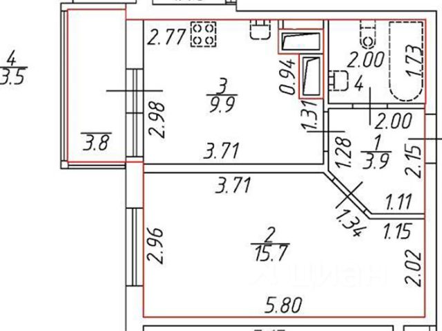 • ОБЩАЯ площадь: 33,4 кв.м.