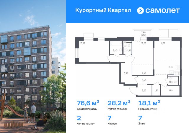 Строим кварталы для жизни с заботой о будущем. Предлагается 2-комнатная квартира комфорт-класса 68,1 кв.м в корпусе 8 на 3 этаже, в ЖК "Курортный Квартал" Квартира с чистовой отделкой. Доступность дополнительных опций уточняйте у застройщика. Приобрести квартиру возможно по специальным акциям от застройщика, с текущими условиями акций можно ознакомиться в блоке "Акций". Цена динамическая и может отличаться, уточняйте актуальность у застройщика. Чтобы воплотить ваши мечты о жизни на курорте, мы построили проект комфорт-класса в 20 минутах от Финского залива. "Курортный Квартал" расположен в престижном районе поселка Песочный, всего в 25 минутах от центра Петербурга и 20 минутах до метро. На территории будет школа на 1100 мест с бассейном и детский сад на 110 мест. На первых этажах откроются кафе, магазины и пекарни. Рядом — спортивные секции и медицинские центры. В 3 минутах от дома — Курортный лесопарк для пикников и спорта на свежем воздухе. В выходные можно загорать на пляжах Финского залива или наблюдать за цаплями на Сестрорецком разливе. Корпуса высотой 710 этажей с фасадами в природных оттенках. Приватные дворы-парки без машин — с тренажерами и детскими площадками. Есть зеленый бульвар и сквер для отдыха. Предусмотрен открытый паркинг. В сквозных парадных — безбарьерная среда и помещения для хранения колясок. Все квартиры — с готовой отделкой, поэтому вам не придется тратить время и силы на ремонт. Продается квартира в поселке Песочный в Санкт-Петербурге.