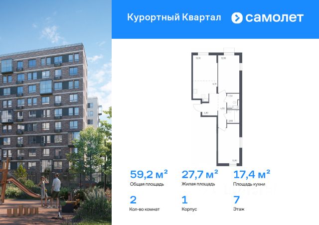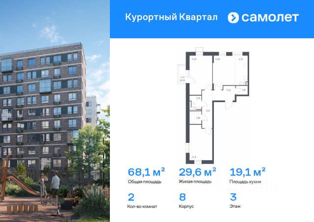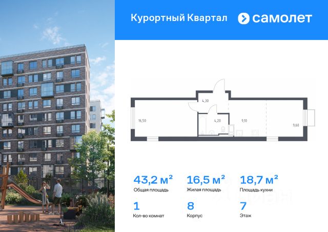Строим кварталы для жизни с заботой о будущем. Предлагается квартира студия комфорт-класса 19,6 кв.м в корпусе 581 на 5 этаже, в ЖК "Курортный Квартал" Квартира с чистовой отделкой. Доступность дополнительных опций уточняйте у застройщика. Приобрести квартиру возможно по специальным акциям от застройщика, с текущими условиями акций можно ознакомиться в блоке "Акций". Цена динамическая и может отличаться, уточняйте актуальность у застройщика. Чтобы воплотить ваши мечты о жизни на курорте, мы построили проект комфорт-класса в 20 минутах от Финского залива. "Курортный Квартал" расположен в престижном районе поселка Песочный, всего в 25 минутах от центра Петербурга и 20 минутах до метро. На территории будет школа на 1100 мест с бассейном и детский сад на 110 мест. На первых этажах откроются кафе, магазины и пекарни. Рядом — спортивные секции и медицинские центры. В 3 минутах от дома — Курортный лесопарк для пикников и спорта на свежем воздухе. В выходные можно загорать на пляжах Финского залива или наблюдать за цаплями на Сестрорецком разливе. Корпуса высотой 710 этажей с фасадами в природных оттенках. Приватные дворы-парки без машин — с тренажерами и детскими площадками. Есть зеленый бульвар и сквер для отдыха. Предусмотрен открытый паркинг. В сквозных парадных — безбарьерная среда и помещения для хранения колясок. Все квартиры — с готовой отделкой, поэтому вам не придется тратить время и силы на ремонт. Продам квартиру в микрорайоне Песочный в Санкт-Петербурге.