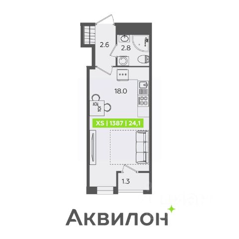 - Планировка позволяет использовать квартиру как небольшую двухкомнатную - выделена зона готовки.