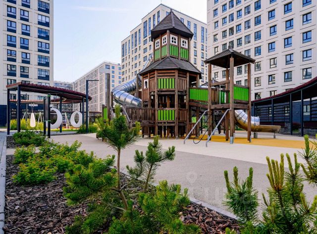 Огромная дворовая зона: детские и спортивные площадки, зоны для прогулок, места отдыха — подойдет как семьям, так и тем, кто любит спокойствие и зелень.