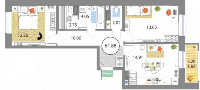 Продаётся 3-комнатная квартира в сданном доме (Дом 54 (Корпус 2)), срок сдачи: III-кв. 2022, общей площадью 61.88 кв.м., на 7 этаже. О квартале В 2020-м году мы запускаем новый проект - жилой квартал Modum, который выведет ваши представления о комфорте на новый уровень. Вдохновляясь легендарным советским архитектором Андреем Буровым, мы соединили практичность постконструктивизма и красоту античной эстетики. Разнообразные планировки квартир обладают всеми преимуществами бизнес-класса и удовлетворят даже самый притязательный вкус. Только представьте - вы возвращаетесь домой, проходя через мраморное лобби, поднимаетесь в квартиру с огромными панорамными окнами, высокими потолками, просторными комнатами и личным кабинетом. Что вы захотите сделать дальше? Может быть, поплавать в бассейне и погреться в сауне? Погулять с ребенком на детской площадке, спроектированной лучшими дизайнерами? А может, проехать по велодорожке через парк? Выбор только за вами! Modum будет находиться в Приморском районе. С одной стороны, близость Юнтоловского заказника обеспечит его жителям свежий воздух и тишину, а с другой - удобное расположение позволит быстро добраться в любую точку Санкт-Петербурга. Квартира на проспекте Авиаконструкторов в Санкт-Петербурге.