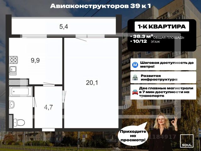 1-92304 Продается светлая 1- комнатная квартира, оборудованная встроенной мебелью и современной техникой. Общая площадь квартиры составляет 30,6 кв. м, из которых 15,4 кв. м — жилая комната и 8 кв.м- кухня. Квартира расположена на 6-м этаже 9-этажного блочного дома, построенного в 1974г. В квартире установлены качественные окна- стеклопакеты, выходят на северо- восток. Большой размер окон даёт максимум дневного света и прекрасный вид на зеленый сквер. На кухне есть кухонный гарнитур со встроенной техникой (газовая стеклокерамическая варочная поверхность, духовой шкаф, вытяжка, посудомоечная машина, двухкамерный холодильник, стол, стулья) В комнате встроена просторная гардеробная с большими зеркальными дверями. Санузел совмещенный 3,2 кв.м., облицованный плиткой, с ванной и стиральной машиной, сделан качественный сантехнический коллектор. Полностью обновлена электрическая разводка во всей квартире. Полы в квартире: плитка с регулируемым подогревом- коридор, кухня, санузел, ламинат- комната. В коридоре установлен вместительный шкаф. Благополучные соседи и порядок в парадной. Отличная управляющая компания. Благоустроенная территория, вход со двора, домофон. Микрорайон имеет развитую инфраструктуру, много зелени. Рядом остановки общественного транспорта, школы, детские сады, поликлиники, продуктовые магазины и ТЦ. На транспорте: 10 минут до станции метро Озерки, Политехническая и ж/д станции Озерки. Пешком: 10 минут до Муринского парка и парка Сосновка. В ближайшие годы будет построенна новая станция метро, в 15 минутах пешком. Все эти параметры делают данное предложение- максимально привлекательным для тех, кто ценит малоэтажную застройку, комфорт жизни в городе в окружении парковых зон, транспортную доступность. 100% готовность к продаже, ипотека возможна, один собственник. Прямая продажа. Полная стоимость в договоре. Просмотры по договоренности, звоните. Ждем Вас! Итака. 30 лет на рынке.