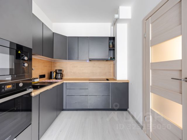 Комната- Отделка итальянская коллекция Ваниль. Ламинат. В комнате 18,6м2 сделана кухня - с индукционной варочной панелью, встроенным духовым шкафом Simfеr (9 режимов работы, включая гриль и конвекцию). Каменная мойка и смеситель-карельский камень. Вытяжка - Еlikоr. Светодиодная подсветка с пультом, в том числе управление с телефона. В кухне- полки, сушилка, микроволновая печь, холодильник. Отдельно стоящий стол, который можно передвигать, высота 73 см.