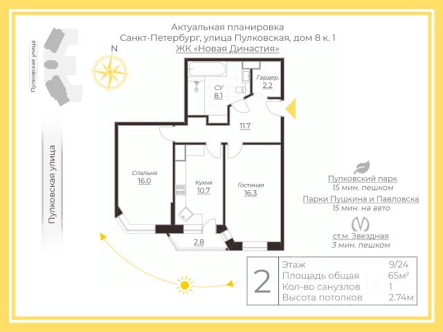 Дом бизнес-класса Новая династия, 2012 года постройки! Шикарная видовая квартира, находящаяся на 20-м этаже, с дизайнерским ремонтом и удобной планировкой с 2-мя изолированными спальнями и кухней-гостиной! Дом с хорошей охраной и видеонаблюдением, консьержем, с закрытой территорией и подземным паркингом! Внутренний двор ухожен, ландшафтный дизайн, прогулочная зона, детская и спортивная площадки, двор закрыт для автомобилей! Удобное расположение: 5 минут пешком до метро, быстрый выезд на Кад и Зсд, 5 минут езды до Московского проспекта, 15-20минут езды до центры города! В квартире выполнен дизайнерский ремонт, с использованием дорогиз материалов: итальянская плитка и обои, двери из массива, качественная кухня и техника! - Оборудована вместительная гардеробная 8м2, прихожая, широкий коридор! - Большой санузел с ванной, а также небольшой гостевой санузел, - Кухня-гостиная сделана единым пространством, с видовыми окнами! - Просторная спальня полностью мебелирована, открывается шикарный вид на город через окна в пол! - Удобная детская комната с мебелью для проживания двоих детей! - Утепленная лоджия с полной отделкой! Износ ремонта и мебели небольшой, в квартире в последние несколько лет практически не жили, продается в связи с переездом собственника за город! Возможна покупка в ипотеку, возможна небольшая скидка, при оперативной и быстрой оплате! В квартире никто не прописан, мат. капитал при покупке использован не был! Возможна продажа парковочного места за дополнительную плиту: есть стандартное и семейное место, стоимость обсуждаема! С удовольствием покажем Вам нашу прекрасную квартиру в любое удобное время!
