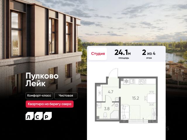 Продается студия в ЖК "Пулково Лейк" на 2 этаже. Общая площадь составляет 21.80 кв. м. Квартира с чистовой отделкой. Жилой комплекс "Пулково Лейк" располагается по адресу Санкт-Петербург, Московский. Пулково Лейк - проект малоэтажной застройки на берегу озера на границе Московского и Пушкинского районов. Дома высотой всего 4 этажа, квартиры от уютных студий до трехкомнатных квартир для большой семьи. Широчайший выбор планировок, включая квартиры с мастер-спальнями, патио, каминами, саунами, двухуровневые квартиры. Школа, детские сады, парк на берегу озера и выезды на Пулковское и Петербургское шоссе. Расположение: • 5 мин на авто до Аэропорта Пулково; • 10 мин на авто до станций метро "Московская; • 10-15 мин на авто до городов Пушкина, Павловска и Гатчины; • 20 мин на авто до центра Санкт-Петербурга. Квартиры в проекте сдаются с предчистовой и чистовой отделкой Соmfоrt Stоnе и Соmfоrt Wооd по современным стандартам - Вы можете сами выбрать отделку, подходящую именно Вам. Дома оборудованы самыми современными инженерными системами и "Умным домом". В рамках проекта будет построена современная школа на 925 мест и 2 детских сада на 160 и 240 мест, выезды на Пулковское и Петербургское шоссе, а также храм рядом со сквером "Пулковский рубеж". Общественное пространство вдоль берега озера превратится во всесезонный парк, в котором найдется место для любых активностей от пробежек, катания на САПах и велосипедах до отдыха в шезлонгах и любования закатом солнца. Зимой будет работать каток, проложен лыжный маршрут, предусмотрено место для новогодней елки и горок для детей. Для Ваших питомцев - площадка для выгула собак. Преимущества: • Высота потолков от 2,6 до 4,5 м; • Уникальные планировки; • Парк на берегу озера; • Система "Умный дом"; • Дворы без машин; • Колясочная в парадной; • Видеонаблюдение в холлах, на первом этаже, в лифтах и в паркингах. Успейте приобрести квартиру на выгодных условиях! Чтобы узнать подробности, обращайтесь за консультацией по телефону. Купить квартиру в микрорайоне Шушары в Санкт-Петербурге.