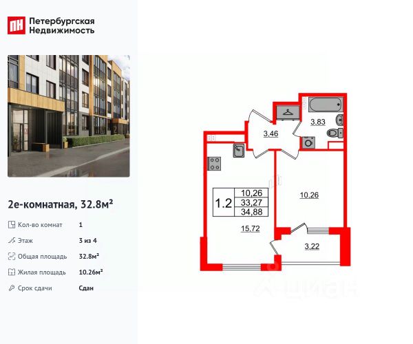 Продается уютная 1-комнатная квартира от застройщика в жилом комплексе "Univer City" в на юге Санкт-Петербурга. До метро можно добраться на транспорте всего за 30 минут. Удобная, классическая, функциональная европланировка, большая кухня-гостиная 15.72 м², вместительная прихожая 3.46 м². Общая площадь квартиры - 32.8 м², жилая 10.26 м², высота потолка 2.77 м. Квартира продается с отделкой "NORD LINE WHITE". Что особенного в ЖК "Univer City"? • Малоэтажное строительство • Скандинавские фасады с отделкой керамогранитом, акцентные входные группы • Закрытые внутренние дворы без машин • Пешеходный променад с тематическими зонами, еловый сквер и яблоневый сад • Univer Park, включая SetlSport и SetlKids, площадку для выгула собак и зоны отдыха • Инновационный Лицей Setl с оригинальной архитектурной концепцией и уникальной образовательной средой