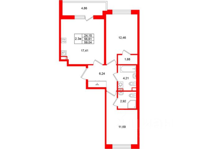 Общая площадь квартиры составляет 44,2 квадратных метра, в том числе комнаты площадью 16,1 и 10,1 кв.м, а также кухня площадью 10,8 кв.м. Высота потолков — 2,63 метра. Планировка включает раздельный санузел, окна выходят во двор. В квартире установлена электрическая плита.