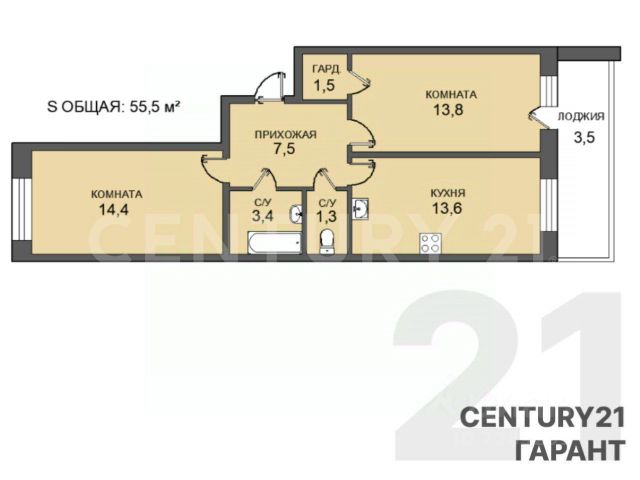 - 2 комнаты на 2 стороны, в одной из комнат небольшая встроенная гардеробная;