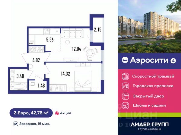 Удобная транспортная доступность. Самый приятный бонус 2 минуты до новой скоростной линии трамвая до Купчино, которую запустили уже в декабре 2025 года. До метро вы доберетесь очень быстро и без пробок!